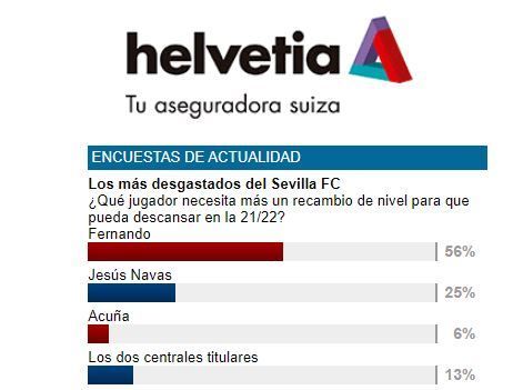 Una alternativa para el palaciego es señalada como la prioridad por el 25 por ciento de los participantes en la última #EncuestaHelvetiaED. Ha sido la segunda opción más votada, ya que la primera ha sido un recambio para Fernando Reges (56%), rol para el que Gudelj no termina de convencer. Sólo a un 6% le preocupa el lateral zurdo y la rotación para Marcos Acuña, por un 13% que señala el centro de la defensa. Eso, claro está, si Koundé y Diego Carlos siguen. Después de sus declaraciones, a buen seguro esa opción crecerá bastante más.