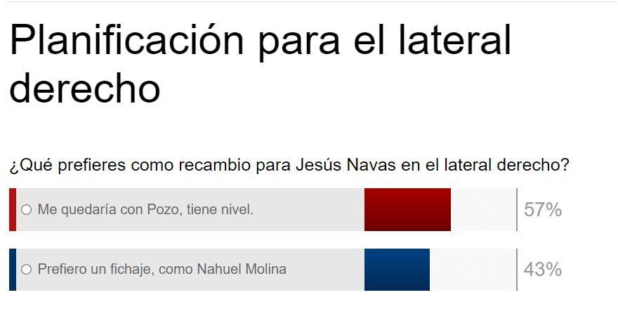 Un 57% de los encuestados se quedaría con Pozo porque considera que tiene nivel suficiente mientras que el 43% prescindiría de sus servicios.