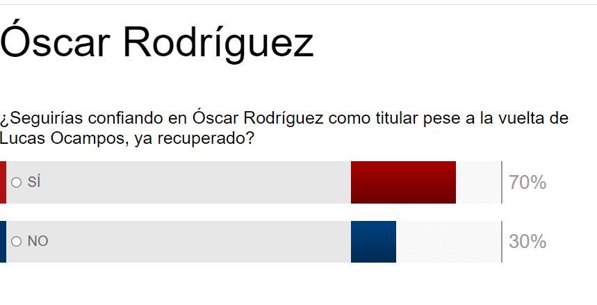 ESTADIO Deportivo quiso conocer la opinión de la afición sevillista sobre si mantendría a Óscar Rodríguez como titular. Un 70% de los encuestados está a favor de ello, mientras que sólo el 30% creen que debe volver al banquillo.
