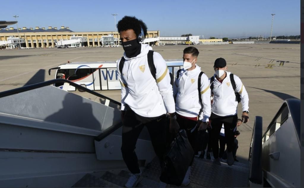 En la expedición sevillista se hizo notar una ausencia y una presencia que, sin duda, ayudará al cuadro de Lopetegui a la hora de afrontar un duelo en el que se juega su futuro en la máxima competición continental.