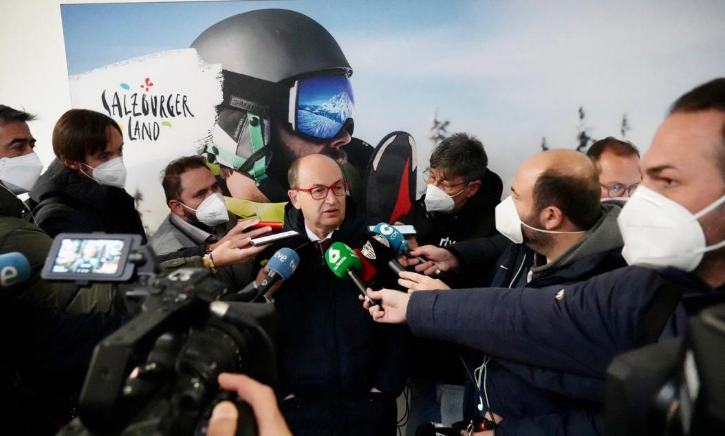 José Castro, presidente del Sevilla Fútbol Club, atendió a los medios de comunicación nada más aterrizar en Salzburgo donde el equipo sevillista se juega mañana su continuidad en la UEFA Champions League.