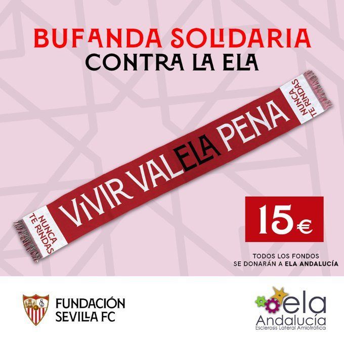 Bajo la firme convicción de que 'Si no nos rendimos nunca, la ELA la paramos entre todos', el club explicó que esta campaña incluye varias iniciativas solidarias a través de la Fundación Sevilla FC, como la venta de una bufanda solidaria con el mensaje 'Nunca te rindas, vivir valELA pena' por 15 euros o del libro 'Una vida plena' que Unzué, Monchi y Lopetegui estuvieron firmando en las puertas de la tienda oficial del estadio el pasado miércoles, tras el emotivo acto de entrega del XII Dorsal de Leyenda al exportero y entrenador.