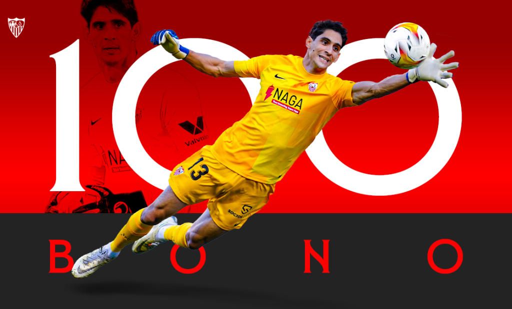 Ahora, Bono puede presumir de haber llegado a los 100 partidos oficiales con el Sevilla FC, lo que le permite entrar en ese selecto club que esta temporada ya han logrado Óliver Torres, Munir, Gudelj o Koundé entre otros... Ante el Cádiz, Bono recibirá su camiseta en recuerdo de esos 100 partidos.