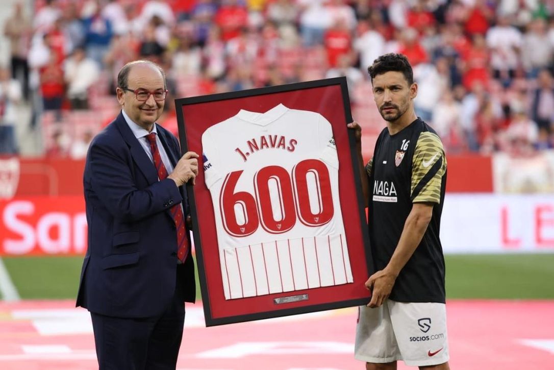 El partido con el que Sevilla FC y Cádiz CF abrieron la jornada 34 en LaLiga arrancaba con el merecedísimo homenaje a Jesús Navas, una 'leyenda', como se podía leer en los luminosos de un Ramón Sánchez-Pizjuán entregado para corear a su capitán cuando éste posaba junto al presidente, José Castro, y una camiseta enmarcada conmemorativa de su espectacular efémeride: 600 encuentros oficiales como nervionense... Ha pulverizado la marca de Pablo Blanco (se acerca a la centena de ventaja) y eso que se fue cuatro años al Manchester City.