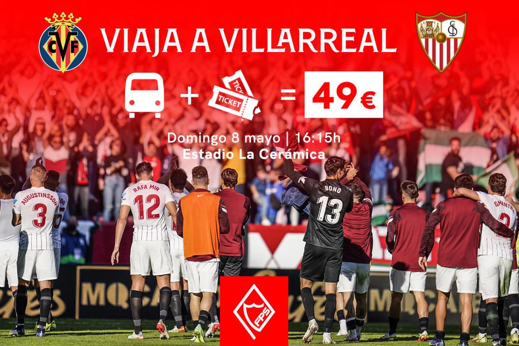 El club de Nervión no quiere que su equipo esté sólo en el estadio amarillo, y por ello sacó el pasado fin de semana una promoción para acompañar a los jugadores junto con la Federación de Peñas Sevillistas San Fernando que incluye viaje y entrada para el Villarreal-Sevilla po 49 euros. Y la acogida no ha podido ser mejor, pues según informa el club de Nervión ya se han llenado un total de once autobuses y son 850 las entradas vendidas en las taquillas del Sánchez-Pizjuán.