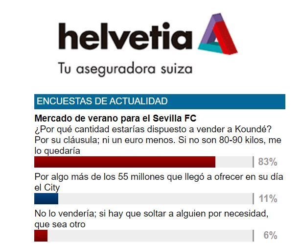 "Ahora quedan tres partidos. Ya hablaremos de la próxima temporada. No tiene sentido hablar de compras o ventas. No voy a alimentar esos rumores. ¿Qué ocurrirá? Pues no lo sabemos, pero tenemos como gran baza a Ramón Rodríguez Verdejo, que lleva tiempo trabajando en la próxima temporada. El mercado dictará los movimientos que haremos. Ahora mismo, de verdad que no tiene sentido hablar de eso ahora mismo".En este sentido, preguntados por ESTADIO Deportivo en la #EncuestaHelvetiaED acerca de un posible traspaso de Koundé, la amplia mayoría de los participantes se decantaron por exigir la cláusula o hacer valer el contrato del central francés, uno de los mejores activos del Sevilla FC y con la juventud y la proyección necesarias como para esperar cifras similares o aún más altas por él en el futuro. En esta línea se ha expresado un aplastante 83% de los encuestados.