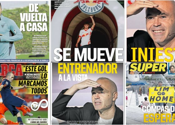 El adiós de Iniesta, los fichajes del Betis, el regreso de Nico Williams... así vienen las portadas de hoyFernando Mateos09/10/2024 08:20El adiós de Iniesta, los fichajes del Betis, el regreso de Nico Williams... así vienen las portadas de hoy