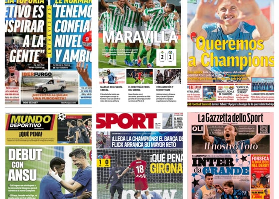 Las portadas deportivas del jueves 19 Barça y Atleti en Champions, el regreso de Ansu Fati, Carlos Sainz... así vienen las portadas