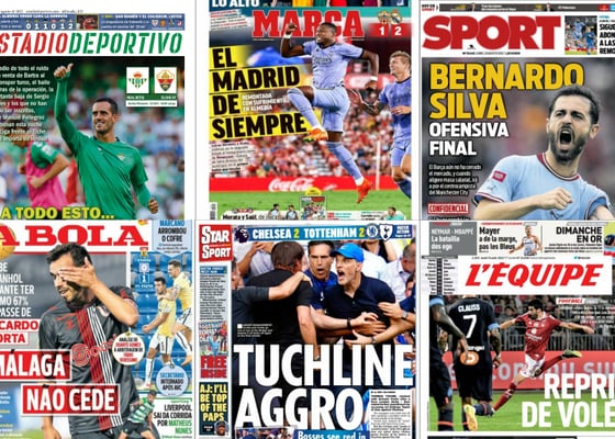 Día de Betis, Alaba, Bernardo Silva, Tuchel y Conte casi llegan a las manos... Así vienen las portadasRafa Gutierrez15/08/2022 08:29Día de Betis, Alaba, Bernardo Silva, Tuchel y Conte casi llegan a las manos... Así vienen las portadas