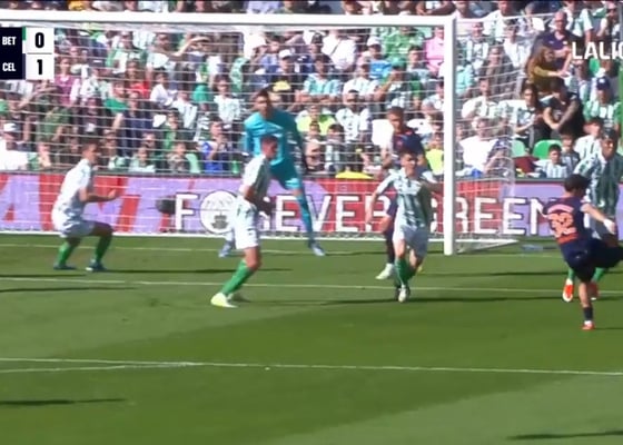 Real BetisOrtiz Arias concedió el 0-1 pese a que Starfelt estorba a Rui Silva; protestas celestes por Chimy, Natan y Johnny