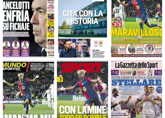 Las portadas deportivas del Jueves 1El show de Lamine Yamal, el futuro de Ancelotti, la cita con la historia del Betis... así vienen las portadas
