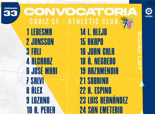 Un regreso en la lista del Cádiz ante el Atlético de MadridJesús Mejías28/10/2022 15:51Un regreso en la lista del Cádiz ante el Atlético de Madrid