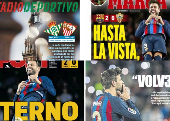 PortadasUn derbi 'molto longo', el adiós de Piqué, el 'robo' del Liverpool al Madrid... Así vienen las portadas