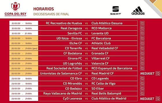 Horarios para el Sevilla-Levante y el Rayo-Betis de Copa del Rey