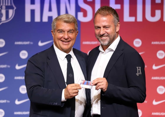 FC BarcelonaLaporta desliza el futuro de Hansi Flick en una noche histórica en el Camp Nou: "le hace mucha ilusión ser el entrenador de un estadio de 105.000 espectadores"