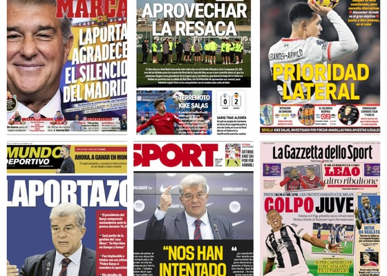 PortadasAl caer, fichaje en Sevilla y salida del Betis; Laporta, Oyarzabal, Sainz, 'baby' Madrid... las portadas de hoy