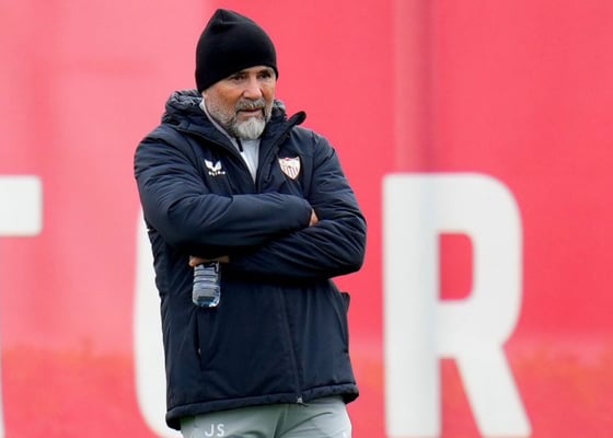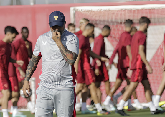 Sevilla FCSampaoli la echa al suelo, da pistas sobre el once y expresa su miedo: "Suele ser el aviso de una lesión inminente"