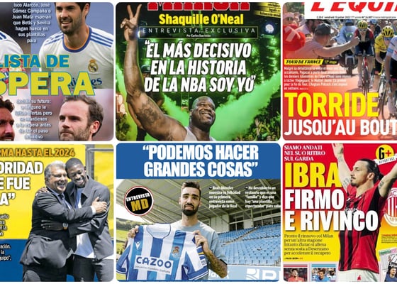 PortadasPausa para Aouar, Isco, Campaña o Mata; eterno Ibra, Shaquille, Dembélé... las portadas del viernes 15 de julio