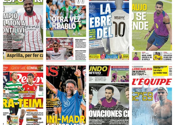 Pablo García, pretenden a Rafa Mir, Mbappé toma el '10', la renovación de Koundé.... Así vienen las portadasAlejandro Luna31/07/2025 08:58Pablo García, pretenden a Rafa Mir, Mbappé toma el '10', la renovación de Koundé.... Así vienen las portadas