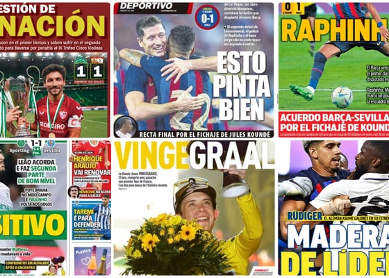 PortadasSporting-Sevilla, Aouar, Vingegaard, Alcaraz, Verstappen... y más 'lío Koundé', en las portadas del lunes 25 de julio