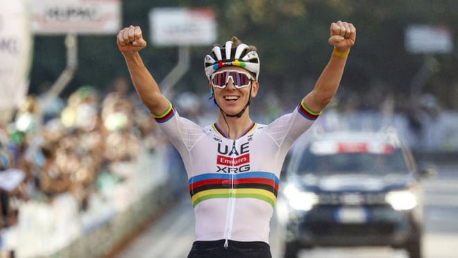 Si en el Mundial y en el Europeo, Pogacar ganó dejando a sus rivales en una subida, en la clásica de los Tres Valles Varesinos lo ha hecho dejándolos... en una bajada