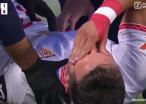 Saúl abandona desolado y en camilla el césped del Sánchez-Pizjuán