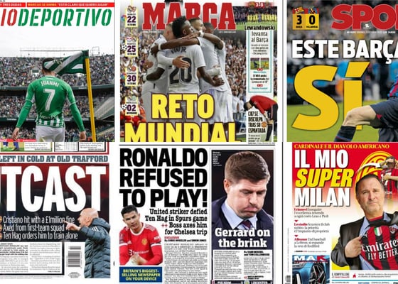 PortadasJuanmi y su vuelta, Lewandowski suma y sigue, el enésimo lío de Ronaldo en el United... Así vienen las portadas