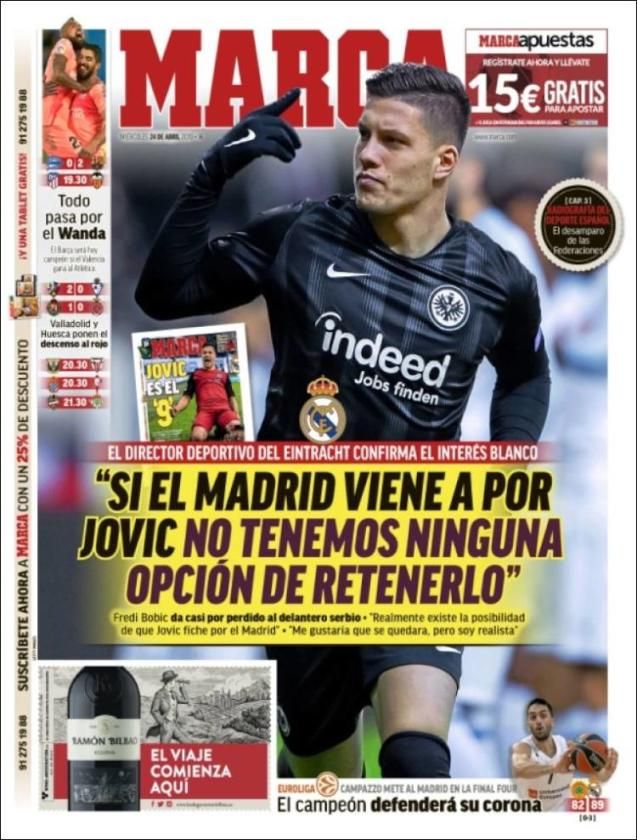 Machín, Joaquín, Denis, Llorente o Christensen, en las primeras páginas