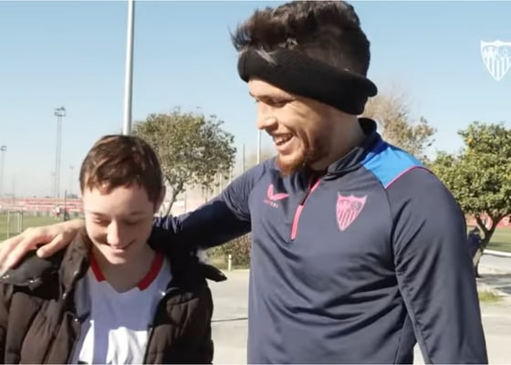 Sevilla FCUn Ocampos sin palabras y su bonito gesto a la vencedora de la lucha contra el cáncer Blanca