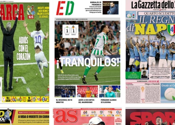 Adiós al Villamarín con empate, Ancelotti y Modric se despiden, el Nápoles hace historia... Así vienen las portadasJavier Jiménez24/05/2025 09:38Adiós al Villamarín con empate, Ancelotti y Modric se despiden, el Nápoles hace historia... Así vienen las portadas