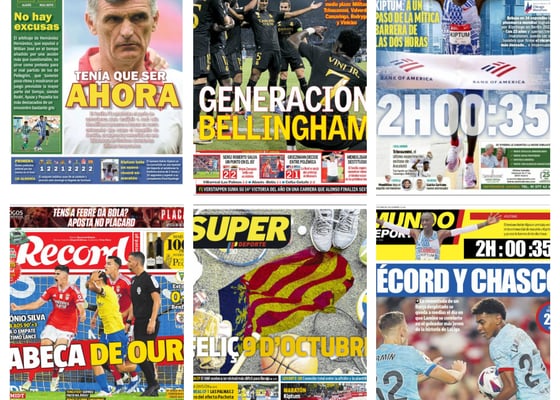PortadasMendilibar destituido, récord de Kiptum, empate del Betis en Vitoria... portadas del lunes 9 de octubre
