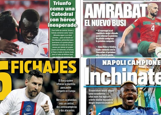 PortadasDía 'caliente' en el Sánchez-Pizjuán y San Mamés, Messi se acerca al Barça, Haaland asusta al Madrid...