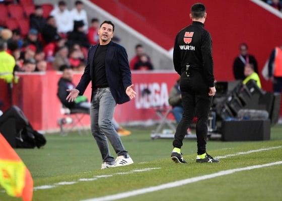 La imagen más viral del Girona: Míchel, "atropellado" por el asistente