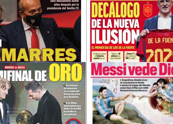 Del Nido sin amarres, Fekir no se mueve, la ilusión de De la Fuente, Messi vs. Modric... Así vienen las portadasFernando Ruiz13/12/2022 08:38Del Nido sin amarres, Fekir no se mueve, la ilusión de De la Fuente, Messi vs. Modric... Así vienen las portadas