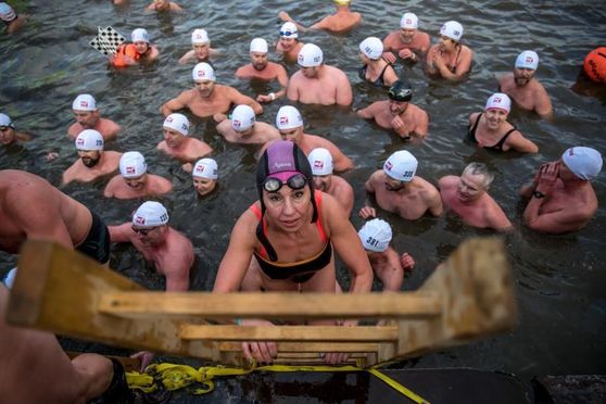 Cuatrocientos nadadores se lanzan al gélido río Moldava