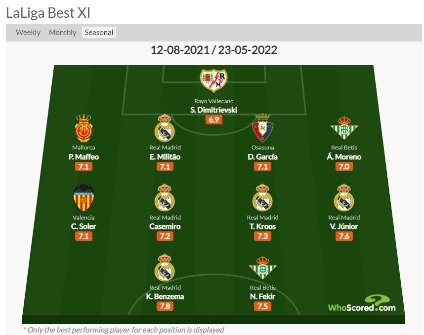 Desde la defensa hasta la delantero, dos jugadores del Sevilla y otros dos del Betis se cuelan en el mejor equipo titular.
