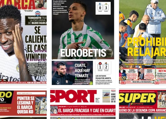 El Betis despierta en Europa, la oferta de Arabia por Vinícius Jr, la renovación de Cubarsí... Así vienen las portadas del día 14 de febreroJavier Jiménez14/02/2025 08:10El Betis despierta en Europa, la oferta de Arabia por Vinícius Jr, la renovación de Cubarsí... Así vienen las portadas del día 14 de febrero