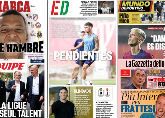PortadasBetis, desalmado; Mbappé, hundido; Barça festivo; Athletic y Real Sociedad, eufóricos... las portadas de hoy