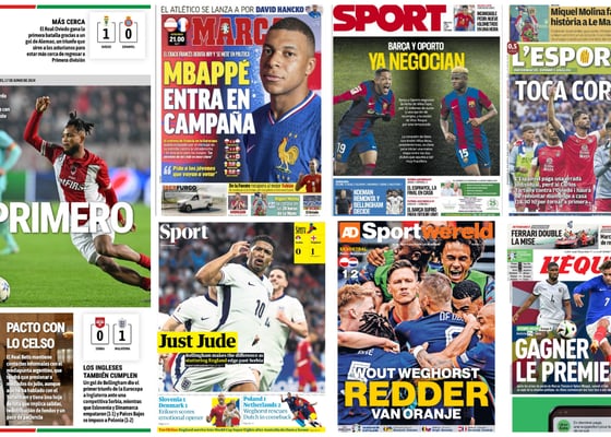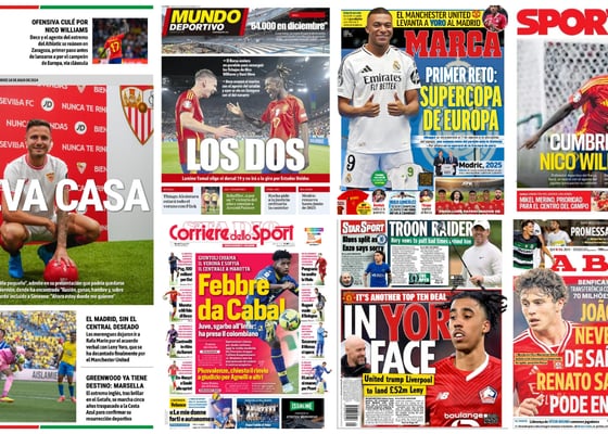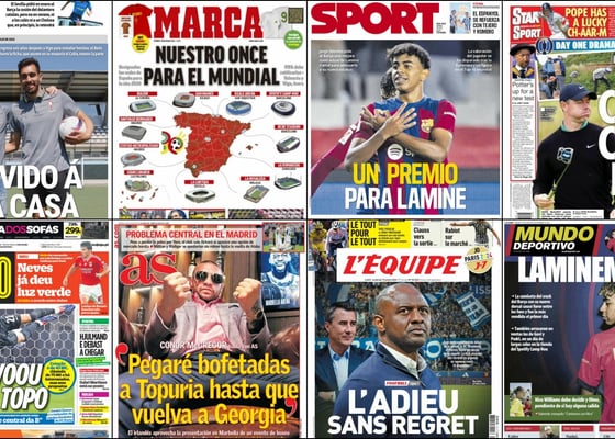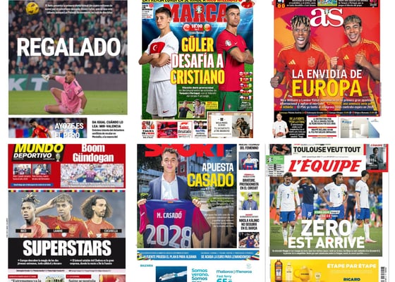 PortadasLas portadas de hoy: Nico Williams, Dani Olmo, Saúl, Álvaro Valles, Mbappé, En-Nesyri, Mikel Merino, Yoro...
