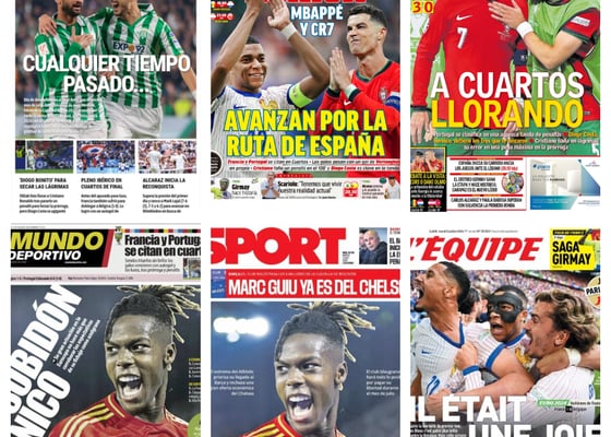 PortadasLa clasificación de Francia y Portugal para cuartos, Nico Williams y el Barça... así llegan las portadas del 2 de julio