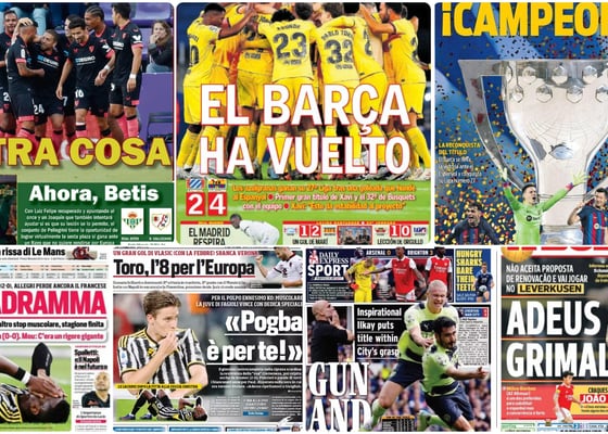 PortadasTensa celebración del Barça; Ahora, Betis; Sevilla, a otra cosa; Drama Pogba... las portadas del lunes 15 de mayo