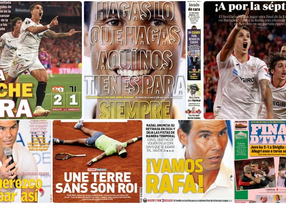 PortadasUn Sevilla-Real Madrid 'ficticius', Bravo, Hamari, Laporta, Kane, Asensio, Giro, F1, tenis...