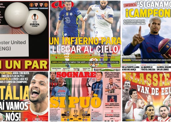 PortadasReyes de Champions y Europa League, revolución de De la Fuente, jornada de Clásico... las portadas del sábado