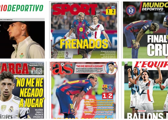PortadasLa goleada del Barça, el desastre del Atleti en Europa, Mbappe como líder del Madrid contra la Juventus... Así vienen las portadas