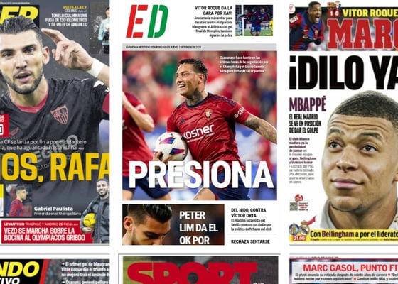 PortadasRafa Mir, Mbappé, Chimy Ávila o el agitado cierre del mercado... así vienen las portadas del 1 de febrero