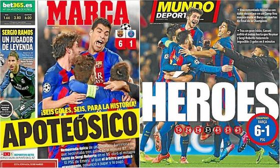 La prensa española pondera la apoteósica remontada del BarcelonaEstadio Deportivo10/03/2017 19:14La prensa española pondera la apoteósica remontada del Barcelona