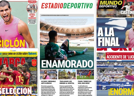 La declaración de amor de Antony, el 'ciclón' Alcaraz, la racha de España... Así vienen las portadasFernando Ruiz06/09/2025 09:19La declaración de amor de Antony, el 'ciclón' Alcaraz, la racha de España... Así vienen las portadas