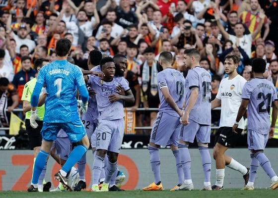 Real MadridLío en Mestalla: Vinicius señala a un aficionado por insultos racistas y la policía interviene
