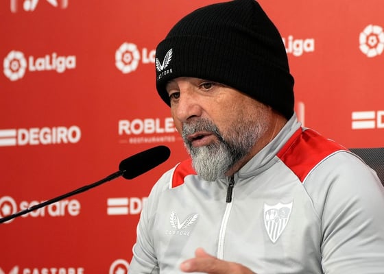 Sevilla FCSampaoli la echa al suelo, da pistas sobre el once y expresa su miedo: "Suele ser el aviso de una lesión inminente"