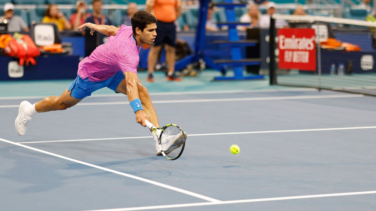 Carlos Alcaraz sigue su camino hacia el Golden Sunshine en Miami, donde parece que mantiene el grandísimo nivel que le llevó a conquistar Indian Wells y le está haciendo merecedor del título de favorito en este segundo Master 1000 de la gira americana. Tras arrasar a Roberto Carballés en segunda ronda y a Gael Monfils en tercera, en octavos de final no dio opción alguna a Lorenzo Musetti, donde ganó con facilidad, aunque dejó algunos detalles de calidad que demuestran que tiene la magia de los grandes con el desparpajo y la inocencia del chaval de 20 años que sigue siendo. Sin embargo, en cuartos de final tendrá que esforzarse al máximo, porque el nivel vuelve a subir.